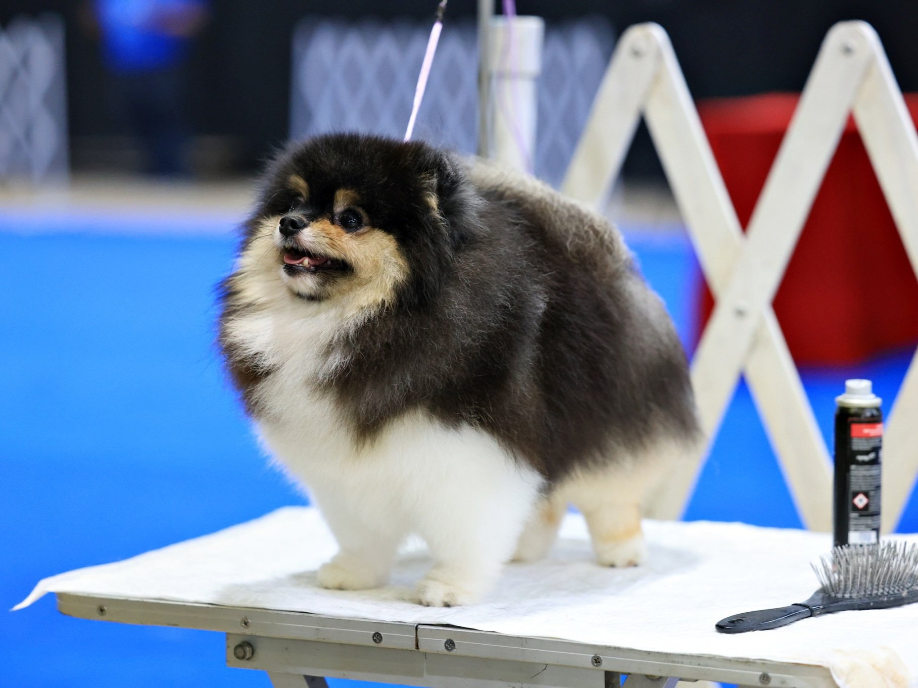 ธันเดอร์ ปอมเมอเรเนียน สีไตรคัลเลอร์ ของ 3P Pomeranian ลงสนามประกวดสุนัข ในกลุ่ม ปอมเมอเรเนียน